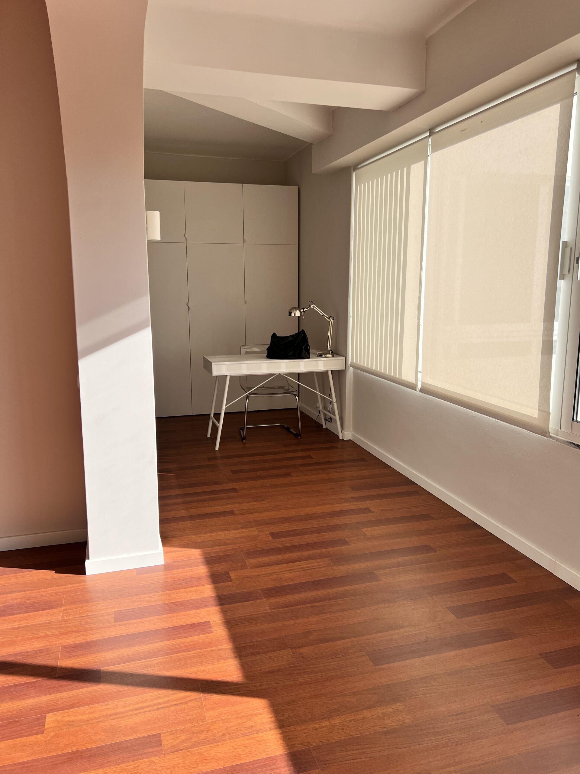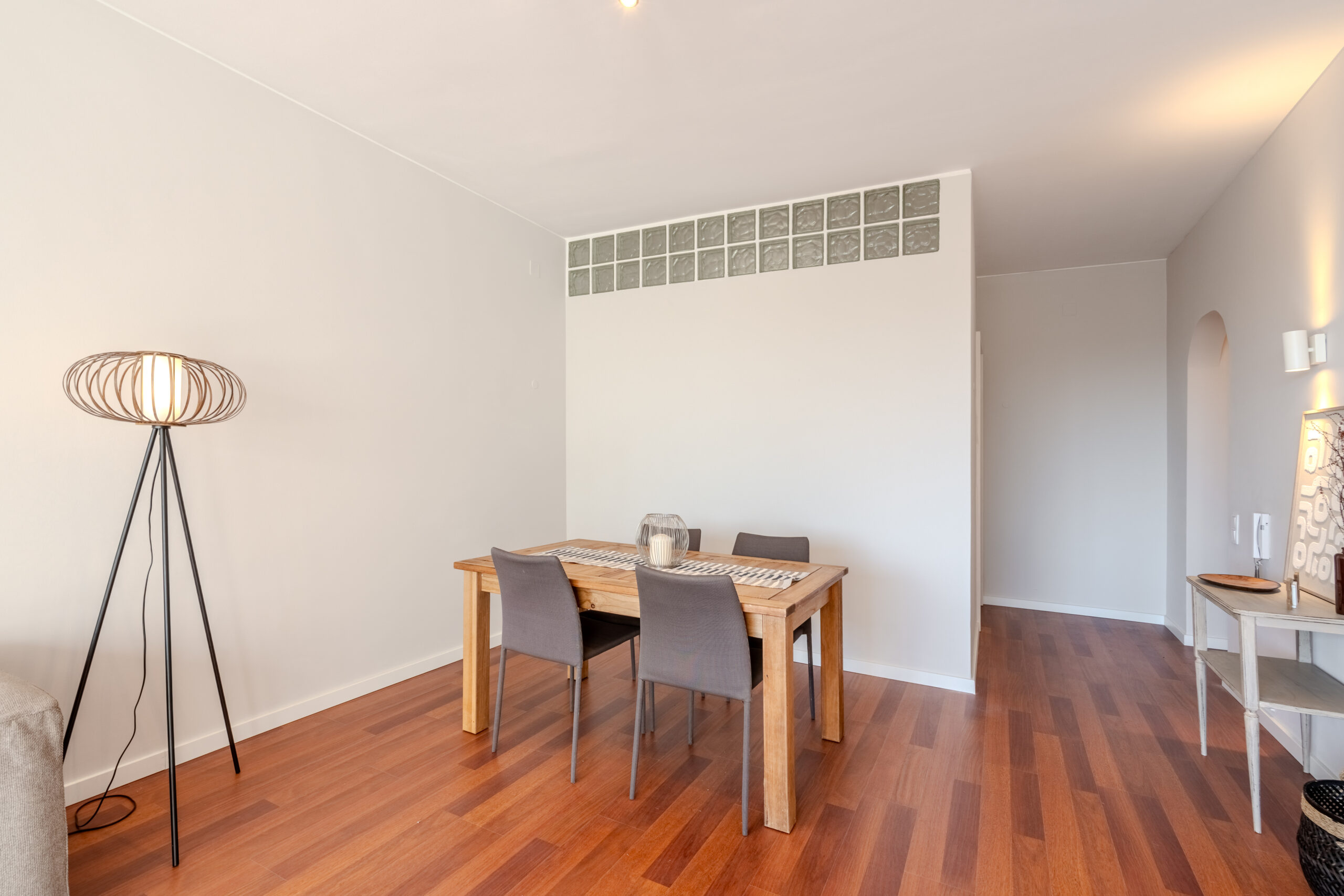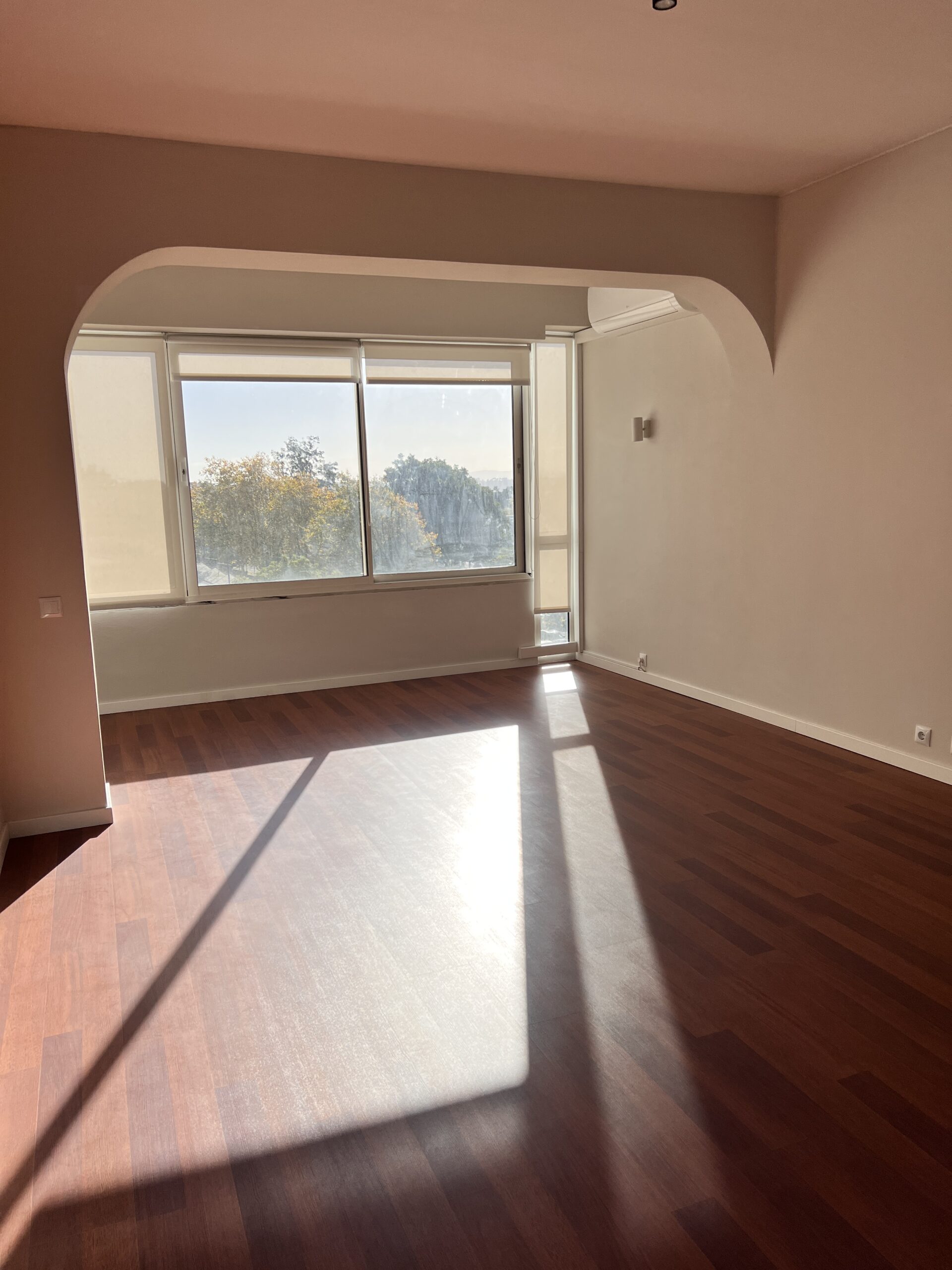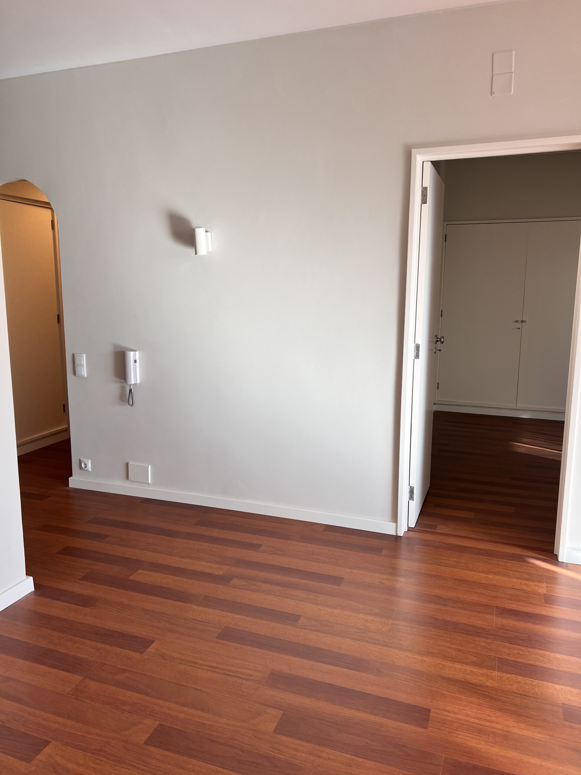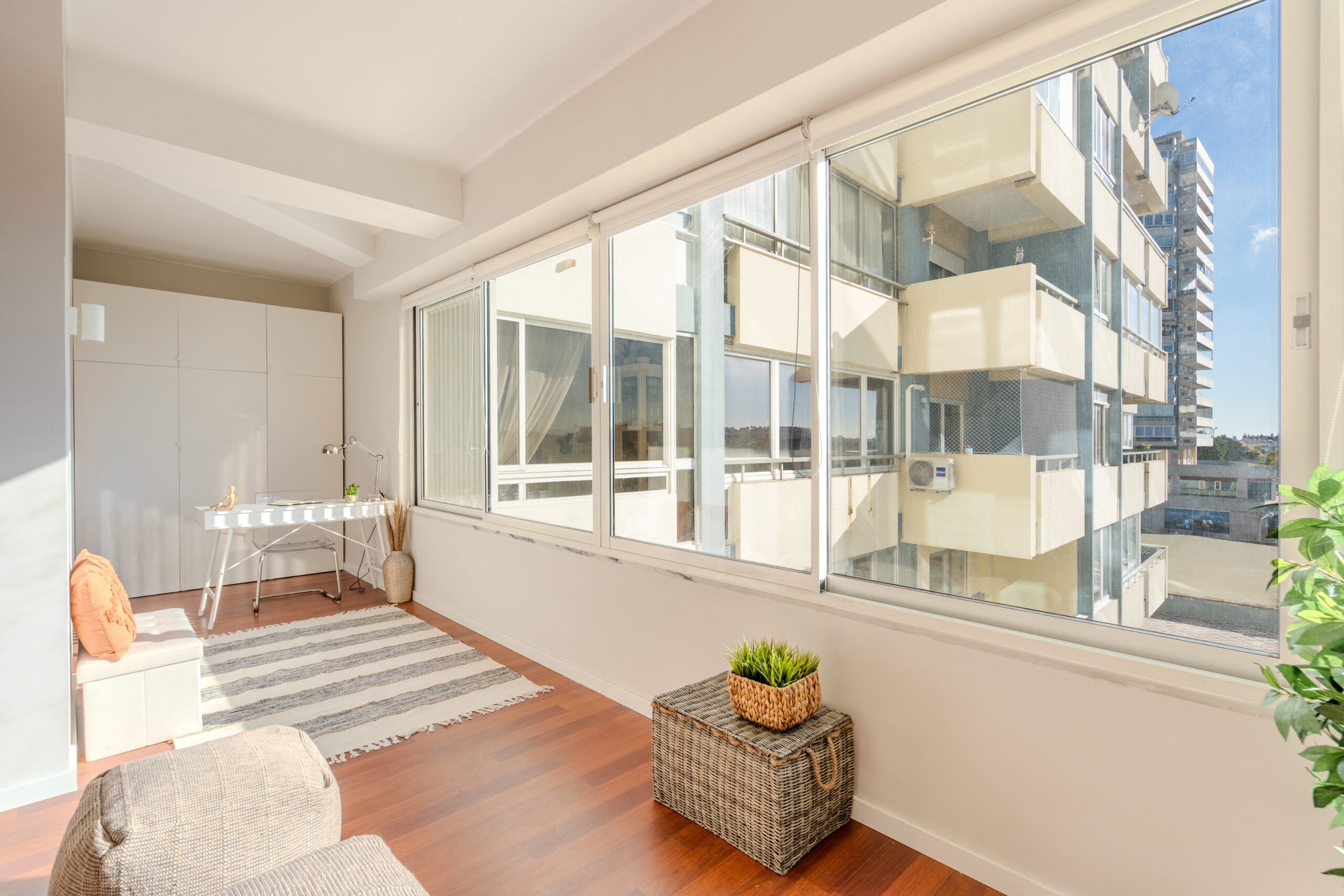 Este apartamento T1 vazio no Restelo encontrava-se vazio e tinha uma sala de grandes dimensões, pelo que o nosso trabalho passou por delimitar os espaços e atribuir funcionalidades aos mesmos, apostando numa decoração leve e neutra, de forma a destacar uma das grandes mais valias da casa: a grande luz natural.